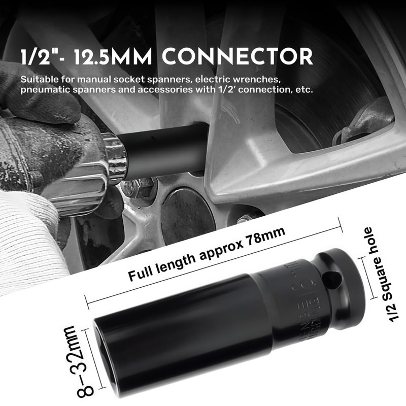 - Usage Scenario: Optimized for scaffolding assembly and industrial fastening, the 18mm impact socket accommodates long-threaded bolts up to 78mm, paired with a locking pin for stability under extreme torque