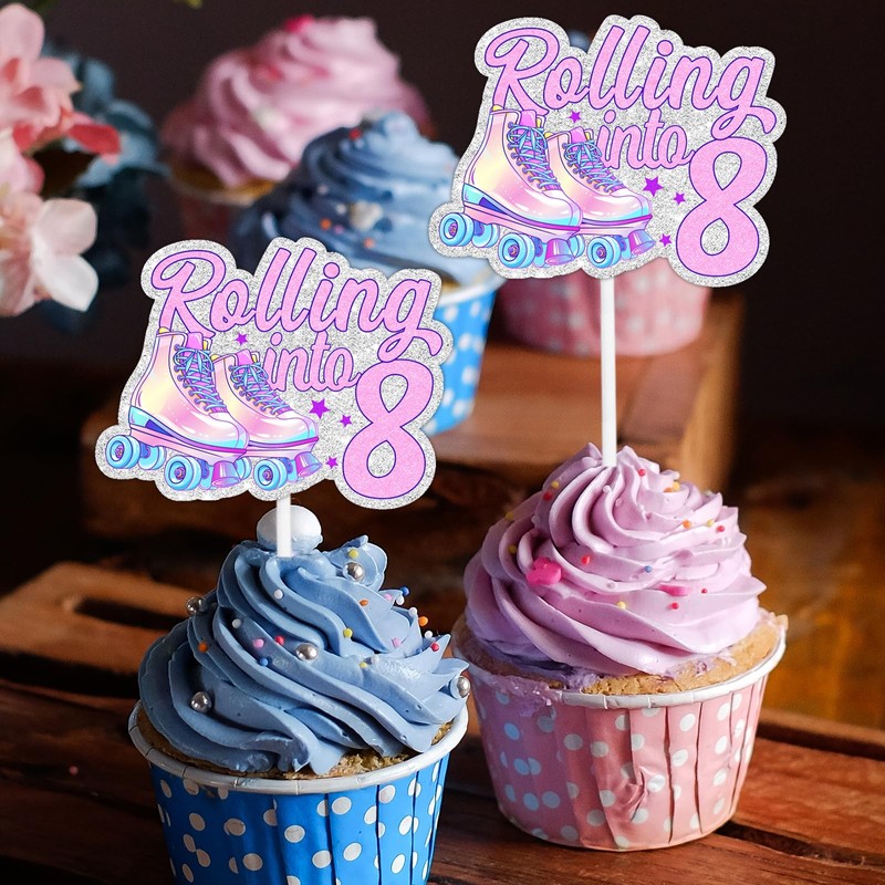 18pcs 8th Birthday Happy Hip Hop Cupcake Topper Set Roller Skate Skate Theme Ice Skating Rink Decoration, Roller Skate Party, Boy and Girl Birthday Party Decoration, Birthday Gift for Kid.