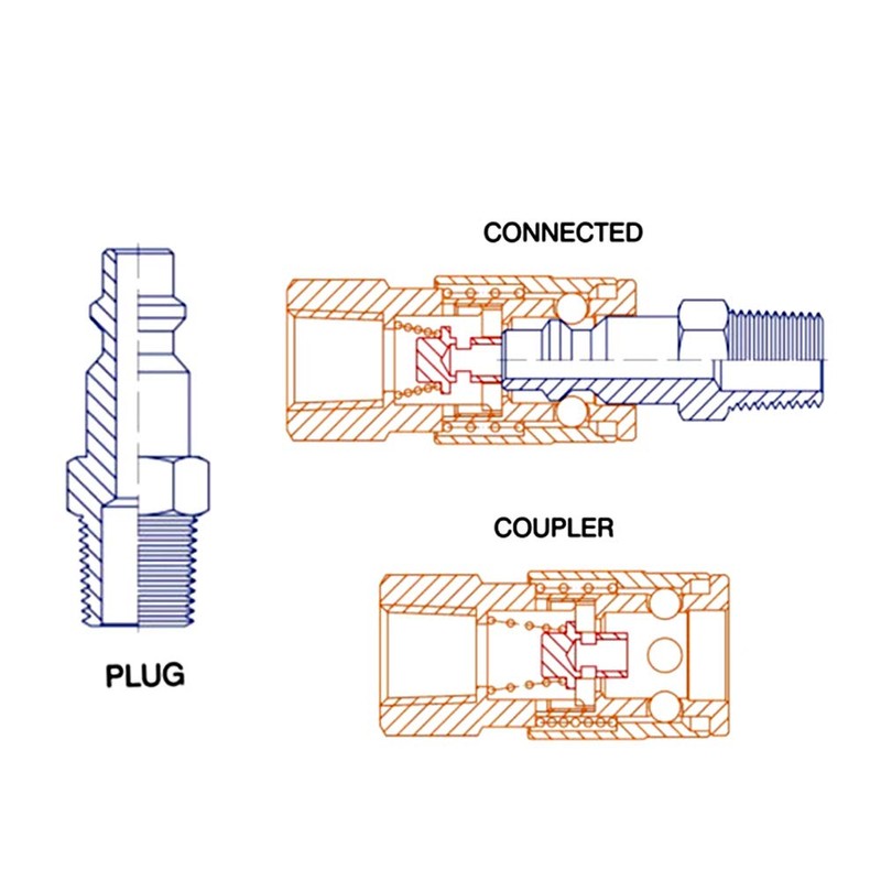 - Spring Loaded Quick Release Couplers For Use On The Compressor Side Have A Valve Built In To Shut Off The Air When Changing Between Tools.