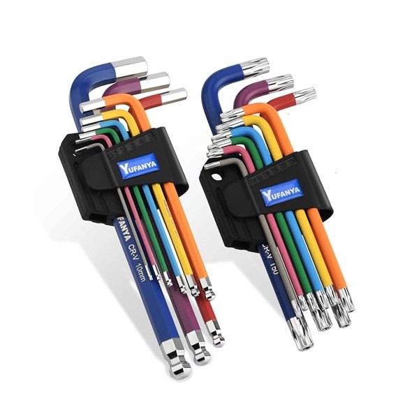 18PCS Allen Key Set,Metric Ball End Allen Hex Key Set and Torx/Star Key Set with Colour Coding,Sizes T10-T50,1.5mm-10mm for Furniture Assembly,Bike,Motorcycle Maintenance,Household DIY,Case Package