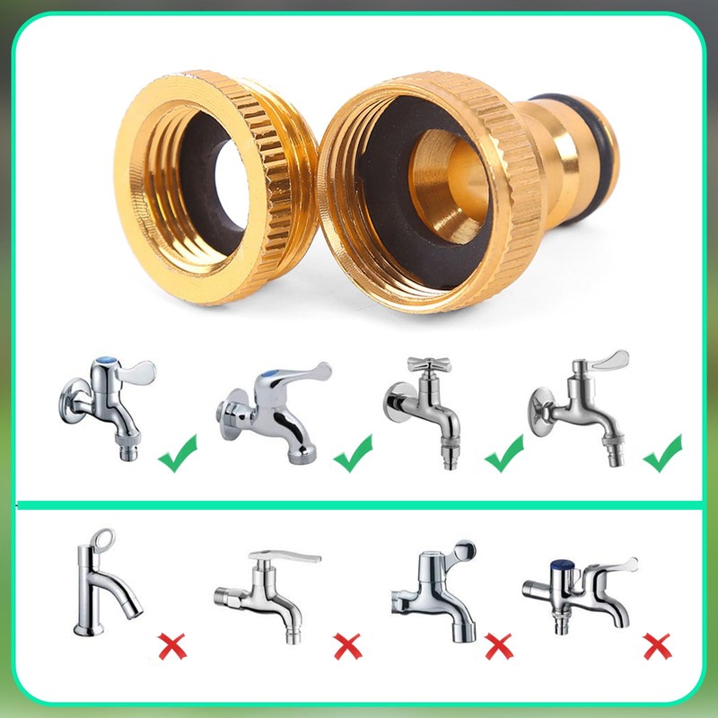 - [2x 2in1 Brass Tap Connector]: The tap connector comes with two parts. When both parts are intact, the connector fits to a 1/2 Inch tap. When the top part is unscrewed, the connector fits into a 3/4 Inch tap.(The Tap should with Male Threaded ).