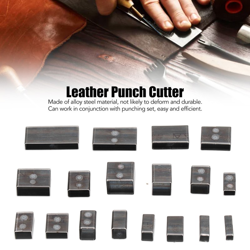 1、Smart Cutting: Quick and simple cutting promises clean cut edges, which will largely facilitate the subsequent processing. 2、18Pcs in Pack: There are 18pcs punching mould with different shapes, fully satisfying your various needs for crafting. 3、Punching Tool: Able to work in conjunction with punch tool set, the leather cutter allows for higher working efficiency. 4、Broad Utility: Can be widely applied to cutting leather product such as wallet and belt, DIY processing, cardboard, etc. 5、Good Material: Using premium alloy steel material, not likely to deform, and has excellent durability for long term using.