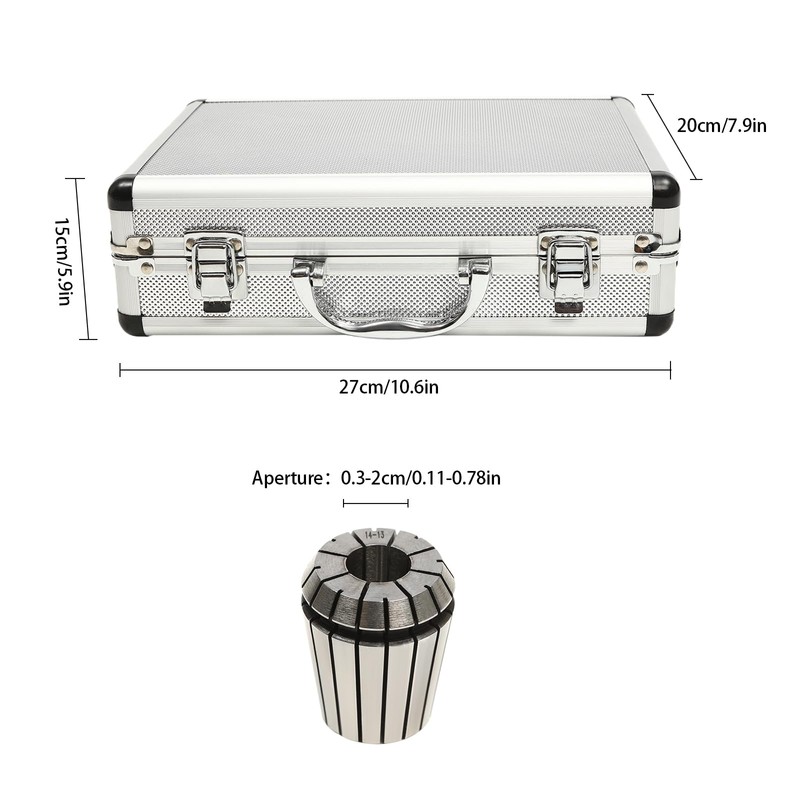 • Easy to Carry and Organize: All collets, the collet chuck, and the spanner are included in the customized aluminum alloy carrying case for easy storage and organizing without fear of them falling out, and you can easily carry them to any working location.