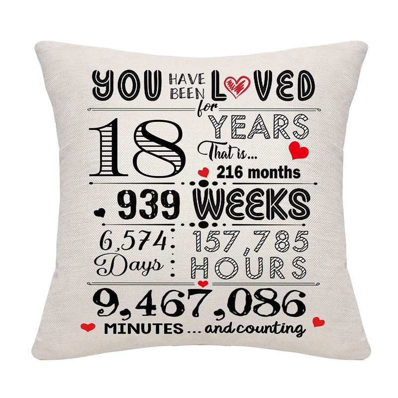 18th Birthday Gifts Decorations Presents Throw Pillow Cover for Adult Ceremony Coming-of-Age Ceremony 18 Years Old Girls Boys Girls Birthday Gifts 18 Years Gift(Loved for 18 Years)