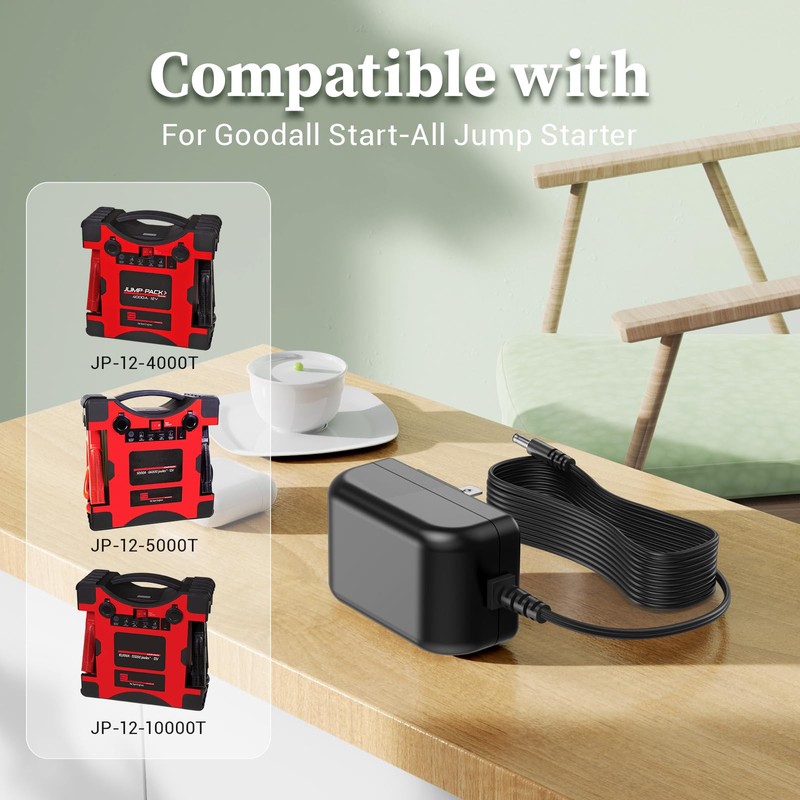 - For Goodall Charger Compatible Models: This charger replacement for Goodall Manufacturing JP-12-4000T JP-12-5000T JP-12-10000T 12V Start-All Corded Jump Pack. Please make sure your model number or P.N matches this listing