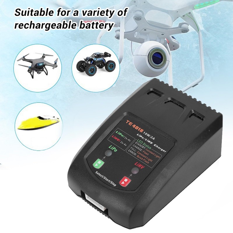 18W LiHV Battery Charger, 2S 3S 4S Balance Charger for Airplanes Cars Boats Toys, Fast Charging with Sided Fiberglass Circuit Board, Compact and Lightweight (US Plug