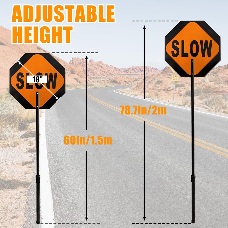 - Comprehensive Kit for Immediate Use: Includes one 18 x 18-inch octagonal STOP/SLOW paddle in vibrant red, orange, black, and white colors, complete with an adjustable pole for quick and easy setup.