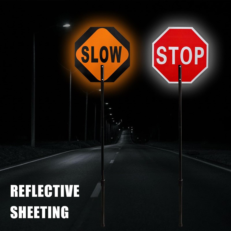 - Durable and Reliable Construction: Crafted from 120 MIL thick aluminum with a polyethylene core, these double-sided reflective STOP/SLOW paddles are designed to withstand heavy use. Unlike steel signs, they resist rust and maintain their structure even in harsh conditions.