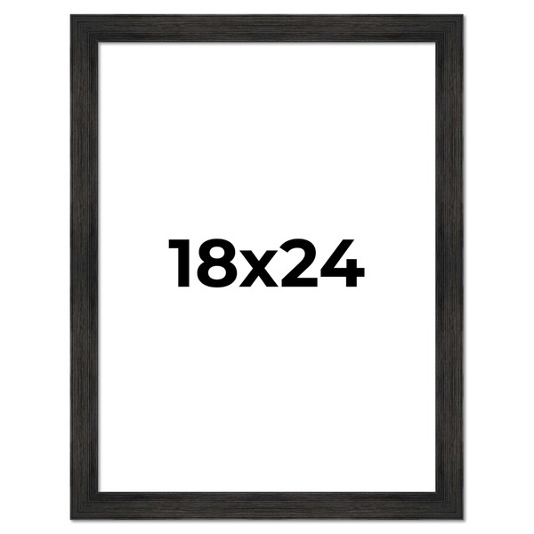 18x24 Frame Black Barnwood Picture Frame - Modern Photo Frame Includes UV Acrylic Shatter Guard Front, Acid Free Foam Backing Board, Hanging Hardware Wood Wall Frames for Family Photos - no Mat