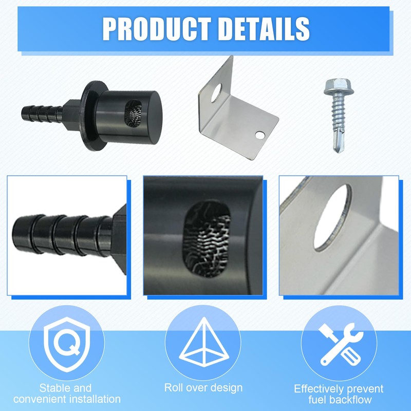 - Construction: 19-174 fuel tank vent valve with 5/16 "hose hook connection for long fuel filling port, packaged with metal bracket for safe external installation