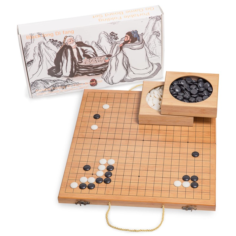 19 x19 Folding Go Game Set Board with and Bamboo Bowls and Imitation Jade Go Pieces。
