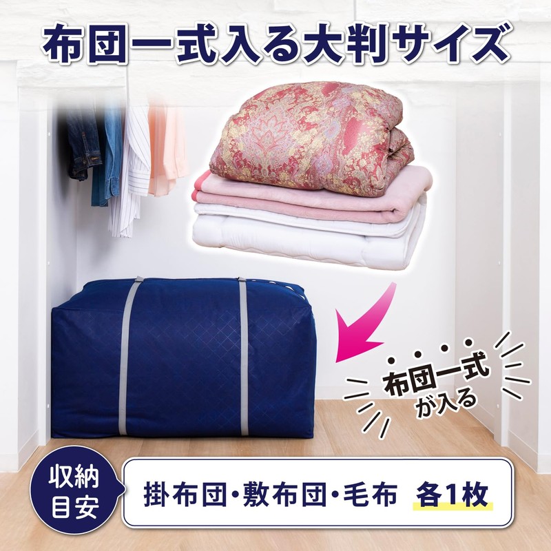アストロ 収納ケース 布団一式用 ブルー 通気性の良い不織布製 ビッグサイズ 引っ越し 輸送用 布団収納袋 来客用やオフシーズンの羽毛布団の保管に たっぷり入る まとめて収納 運搬 送り状入れポケット付き ふとん 掛け布団 敷き布団 毛布 保管袋 ベルト付き 192-02
