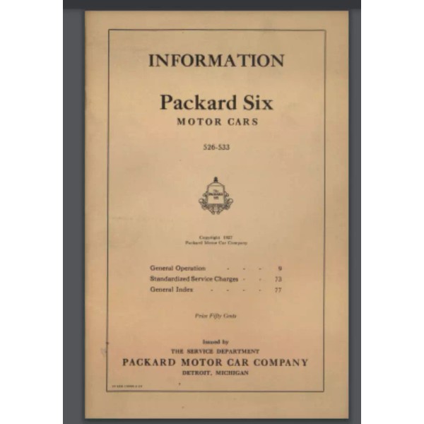 1927 Packard Single Six Owner Care manual 37 pages