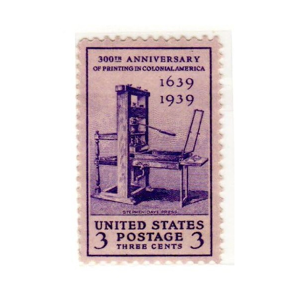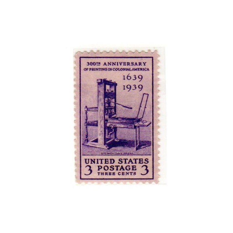1939 Printing Press Tercentenary Single 3c Postage, Sc#857, MNH, OG