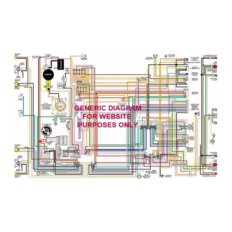 manuals, this diagram is the solution! Since 2001 we have offered the restoration hobby our laminated wiring diagrams in full color for 30's 40's 50's 60's & 70's cars and trucks (up to 81 on certain vehicles). We are always adding other years, makes and models to our inventory, and currently carry close to a thousand different diagrams. Being car enthusiasts ourselves, we understand how our product is used, and how important clarity and accuracy are. All information and color coding is from the original shop and service manuals. For example: if your car has a green wire, the circuit will be represented by a green line. Tracers are also shown if applicable. The diagrams show all of the basic components and connectors in the car per the original specs. We are constantly adding cars to our database. If it is not listed, we can probably create it for you, in most cases within a few weeks. Just send us a quick note