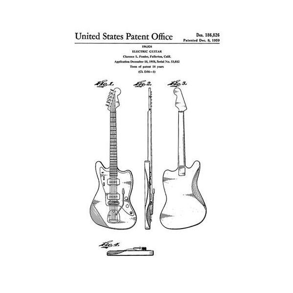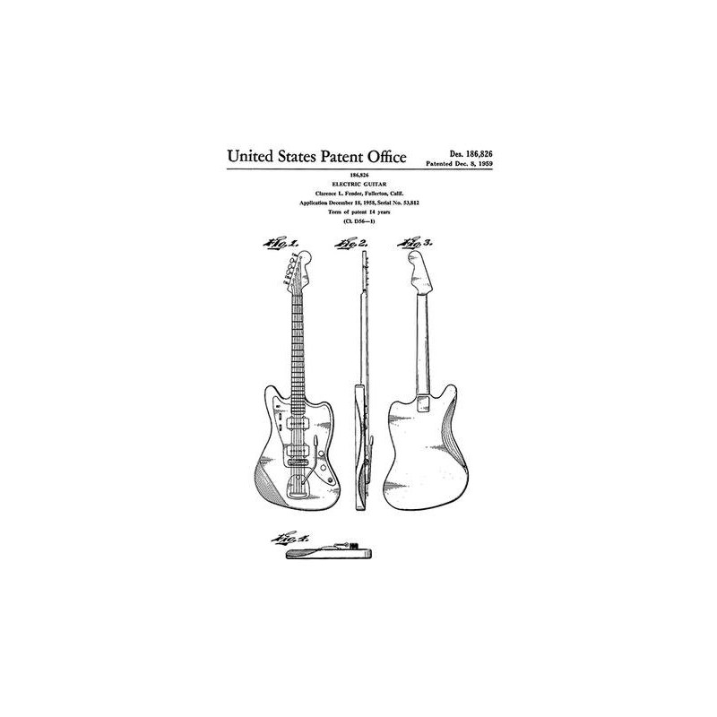 1959 - Fender Jazzmaster Electric Guitar - C. L. Fender - Patent Art Poster