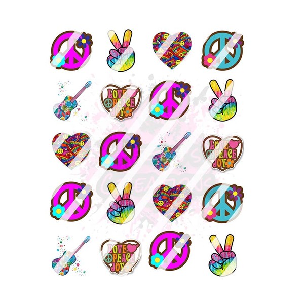 1960's Retro Hippie Peace Love Waterslide Nail Decals