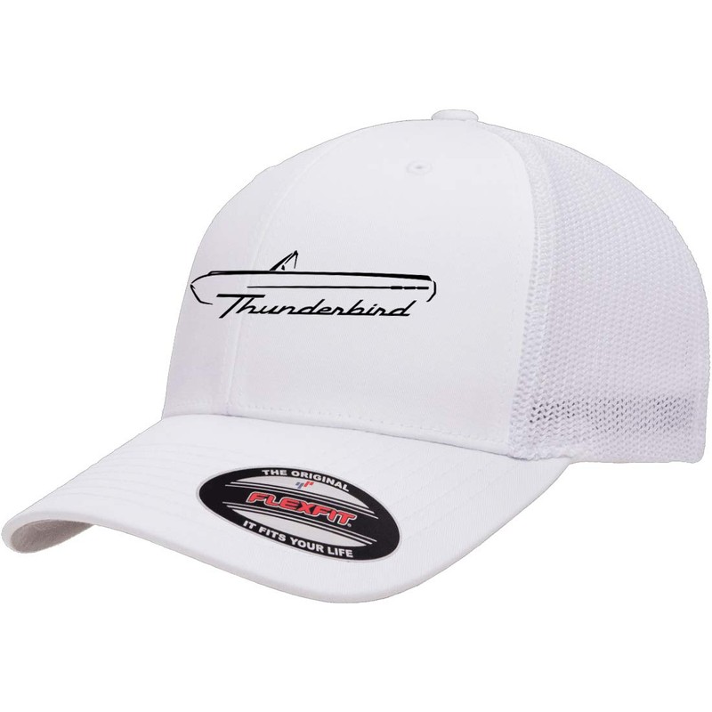 1961 1962 1963 Ford Thunderbird Convertible Outline Design Flexfit Trucker Mesh Fitted Cap White