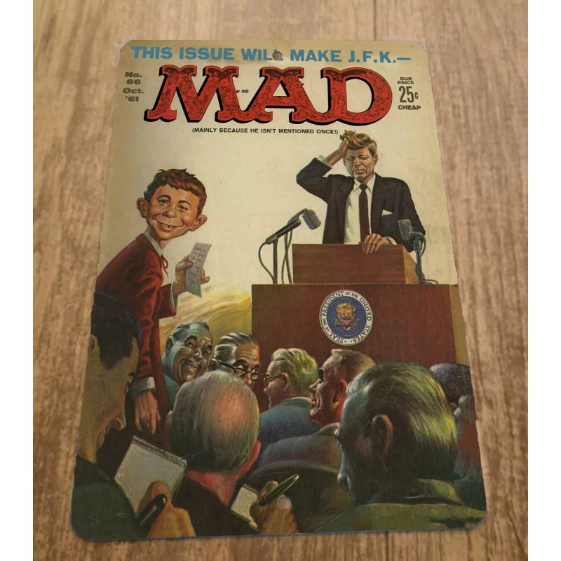 1961 MAD Magazine Cover Art October 66 JFK 8x12 Metal Wall Sign