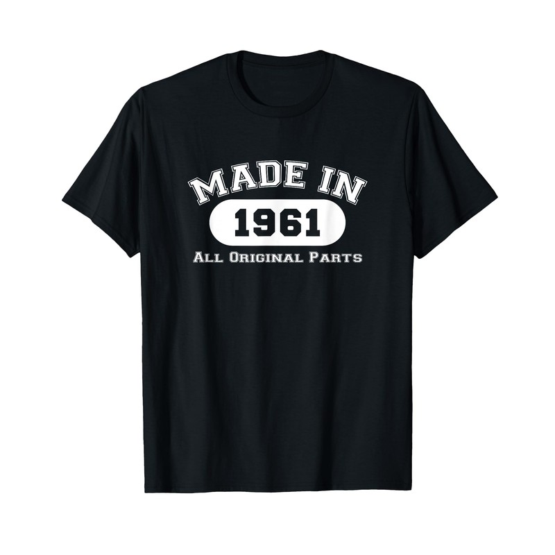 • At 61 years, life starts! This fun year 1961 All original parts design comes with the English original wording Made in 1961 All Original Parts. Perfect funny 61st birthday gift for anyone born in 1961!
