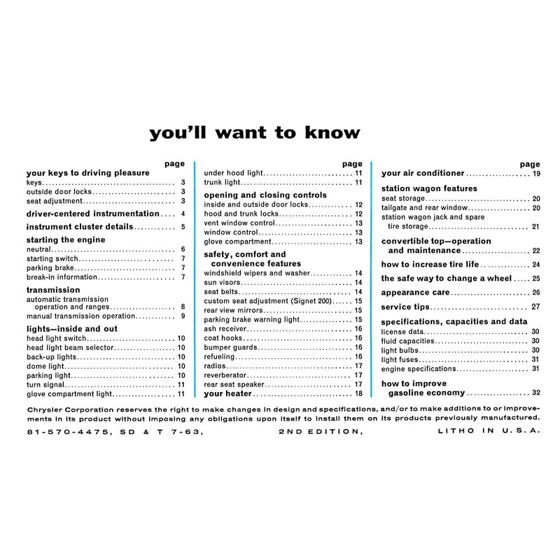 With the 1964 Plymouth Valiant Owner's Manual - COLOR in your toolbox, you have the best owner manual literature for your classic vehicle. This factory-written Detroit Iron owner manual is perfect for the restorer or anyone interested in authentic automotive literature.