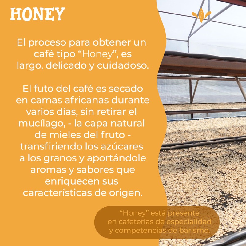 - â PROCESO. El fruto del cafĂ© es secado en camas africanas sin retirar el mucilago, transfiriendo los azĂșcares pasan a los granos y aportĂĄndoles aromas y sabores que enriquecen sus caracteristicas de origen.