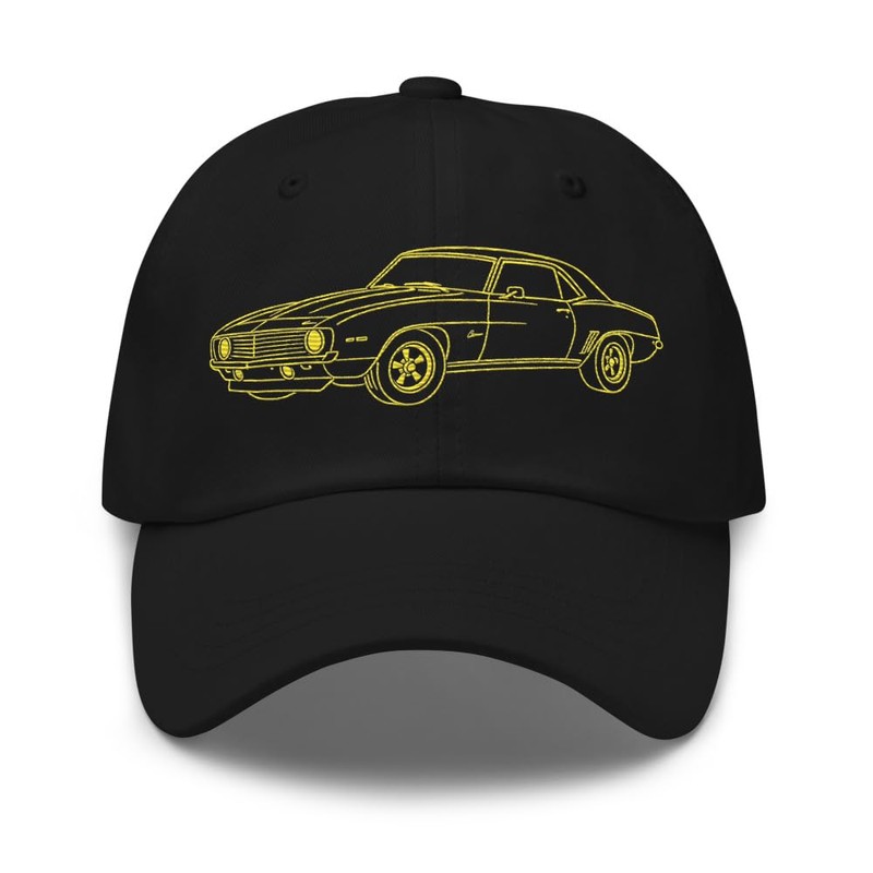 1969 Yellow Camaro SS Dad hat Muscle Car Line Art Cap for Classic Chevy Enthu...