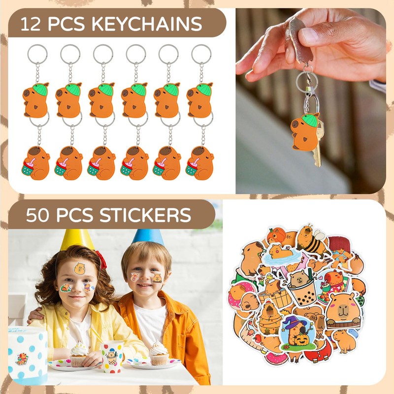 - 【Versatile & Fun for All Ages】Whether for capybara-themed parties, travel souvenirs, or daily use, this kit delights kids and adults alike. Great as prizes, party bag fillers, or collectibles for animal lovers.