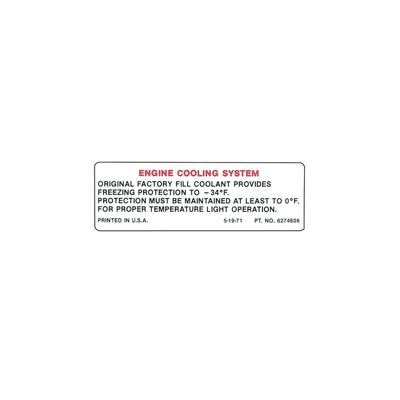 1972 Corvette Engine Cooling System Warning Decal