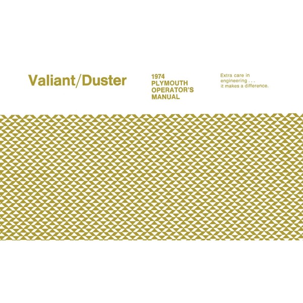 With the 1974 Plymouth Valiant , Scamp & Duster Owner's Manual - COLOR in your toolbox, you have the best owner manual literature for your classic vehicle. This factory-written Detroit Iron owner manual is perfect for the restorer or anyone interested in authentic automotive literature.