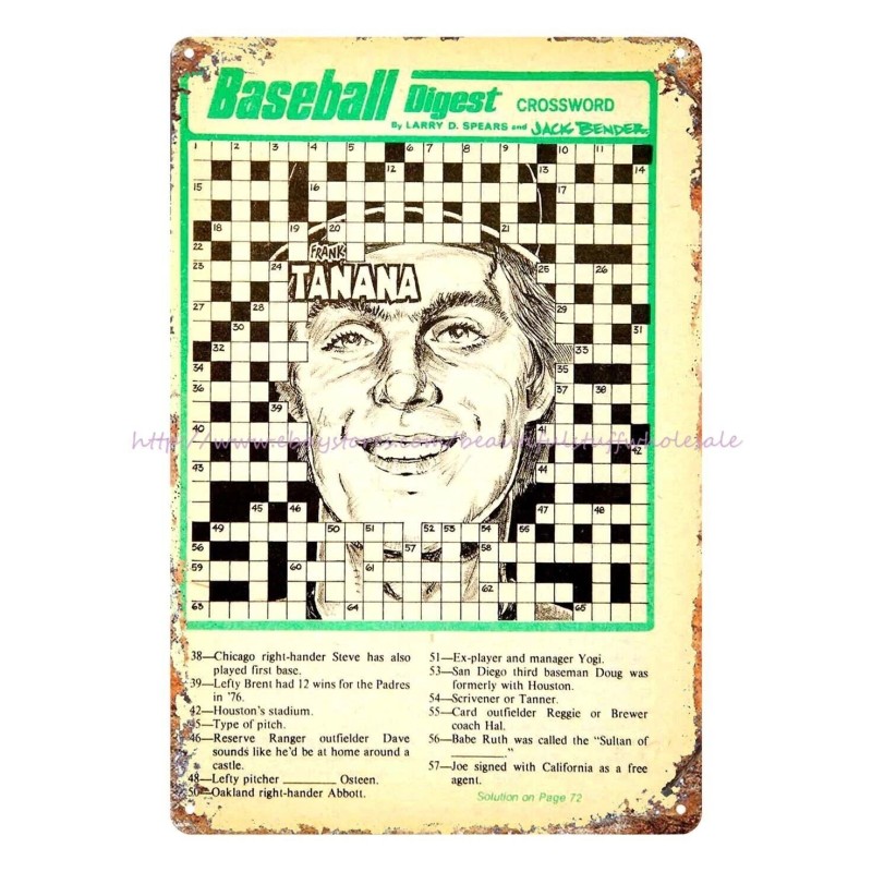 1977 Baseball Sports Memorabilia Crossword Puzzle Frank Tanana tin sign