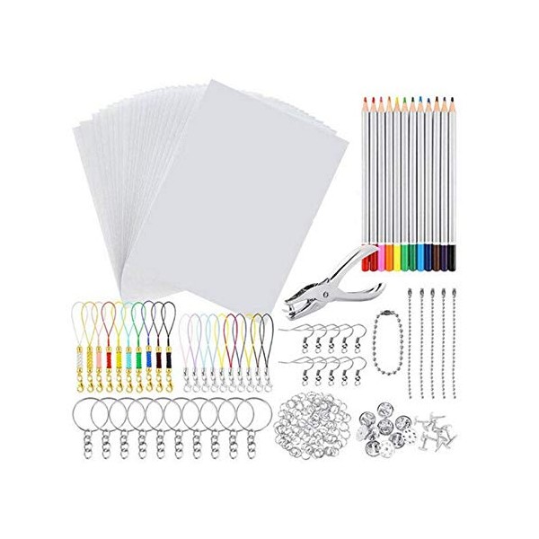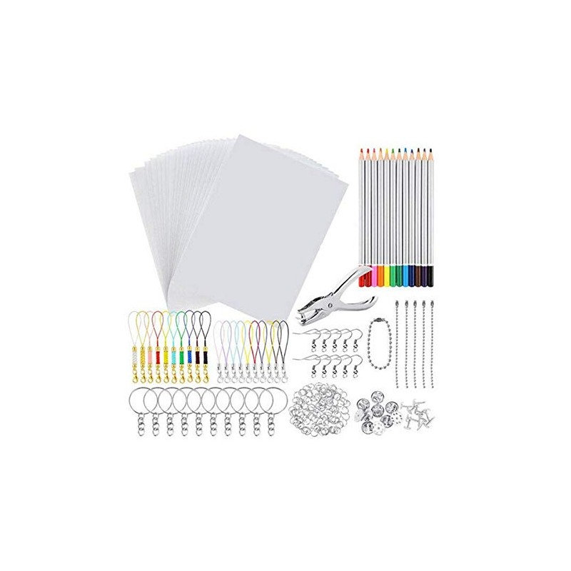 198 PCS Shrinky Art Paper Heat Shrink Sheet Plastic Kit Hole Punch Keychains Pencils DIY Drawing