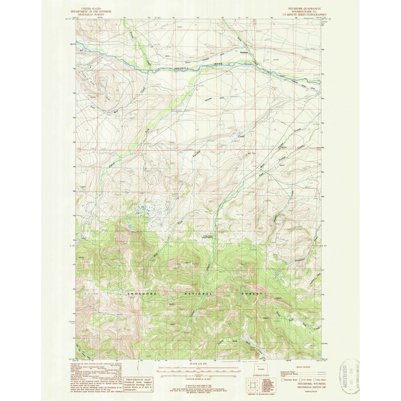 1987 Pitchfork, WY - Wyoming - USGS Historical Topographic Map : 24in x 30in, Large Wall Art Map