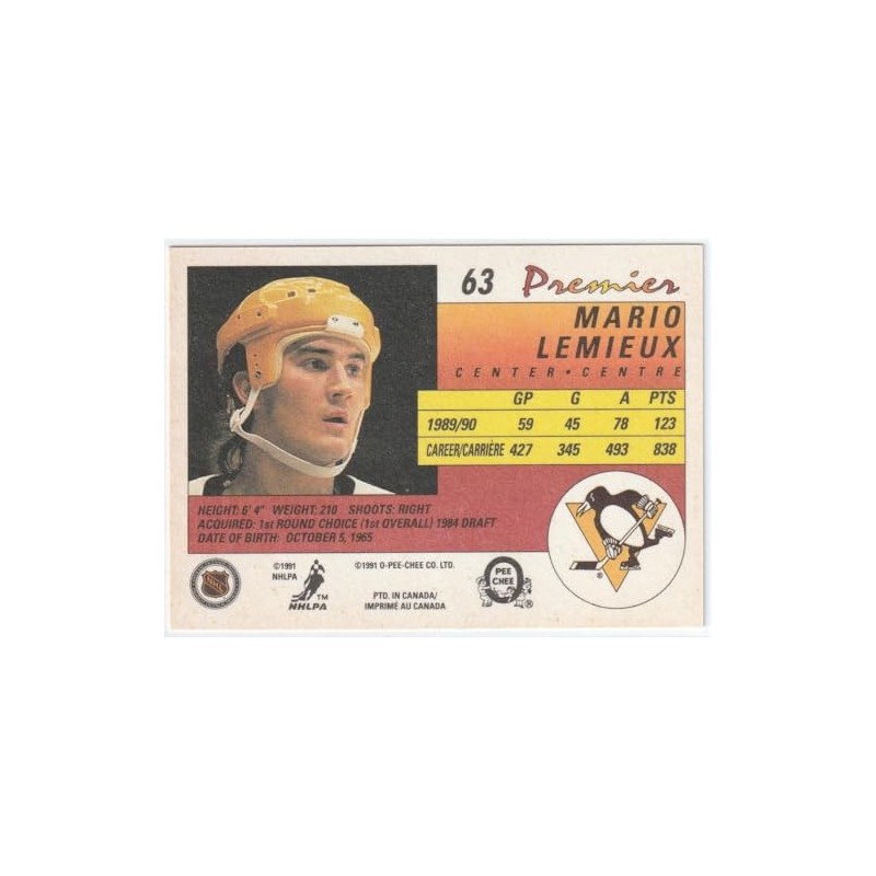 1990-91 O-Pee-Chee Premier Hockey Mario Lemieux Penguins Card #63