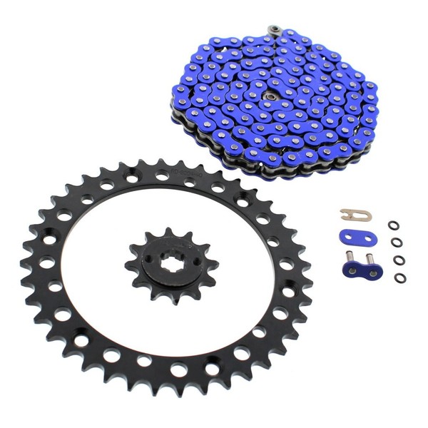 - 12 Tooth Front Sprocket, 40 Tooth Rear Sprocket and 520-92L Blue O-Ring Chain