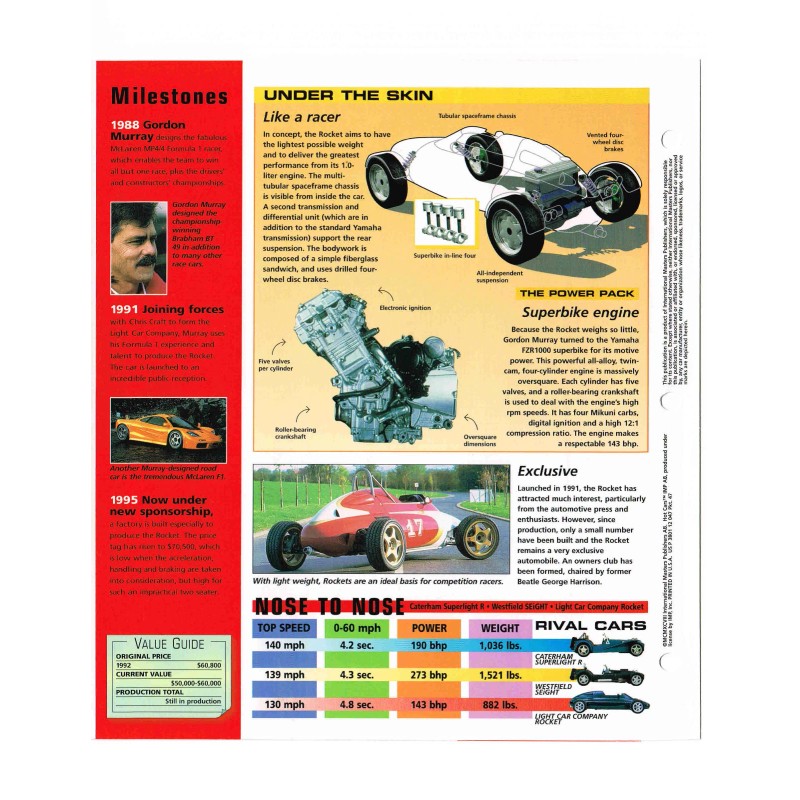 1998 LIGHT Car Co ROCKET IMP Brochure: Gordon Murray
