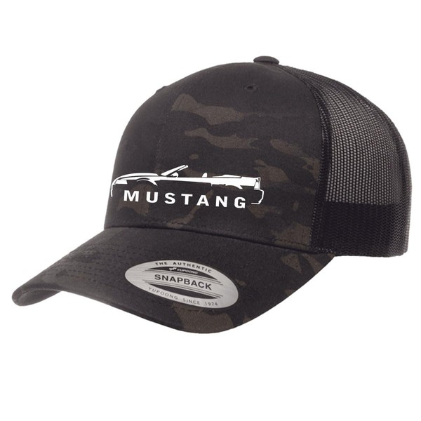 1999-04 Ford Mustang Convertible Fully Embroidered Yupoong 6606 Snapback Trucker Fitted Cap Multicam Black