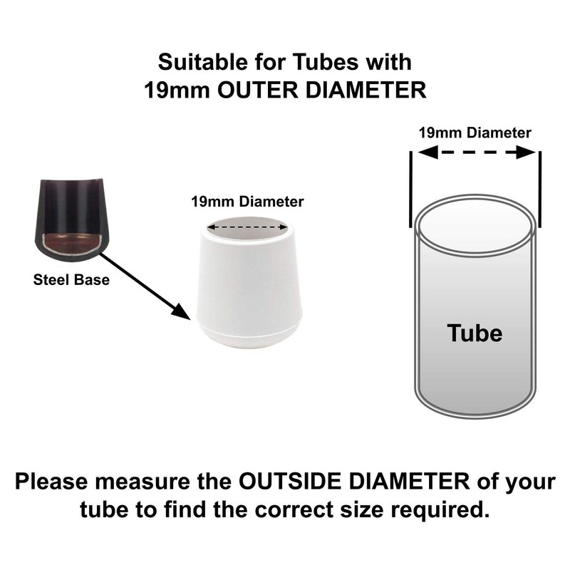 - Ideal for use as floor protectors on chair feet, table legs, furniture feet, garden furniture, ladders, ironing boards legs, walking sticks, industrial equipment feet, mechanical equipment feet, and other similar items with CHS tubes (Circular Hollow Section) or rounded legs.