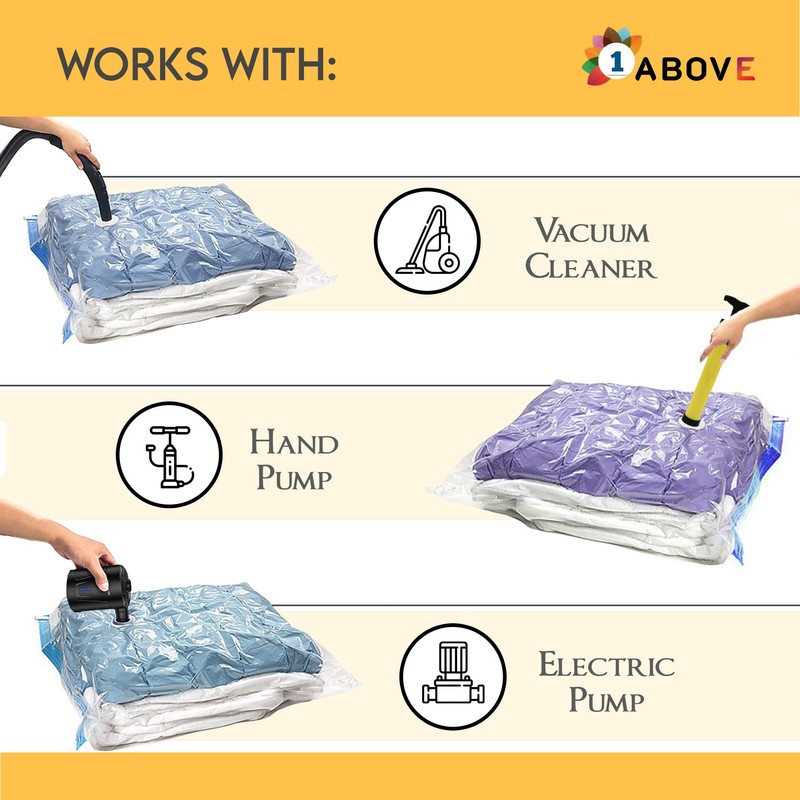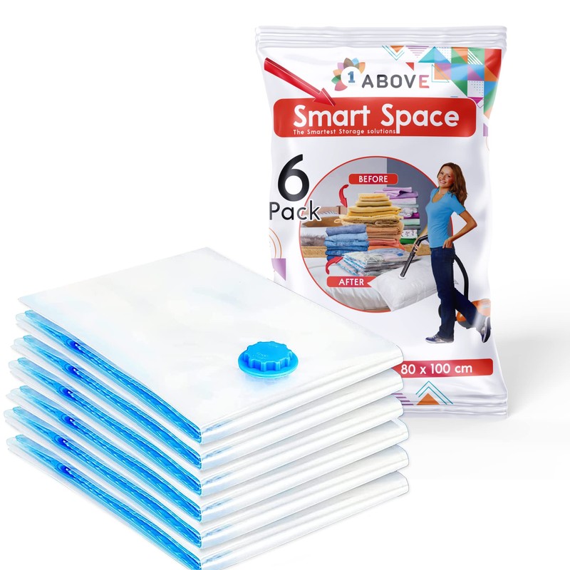 1ABOVE Pack of 6 Vacuum Compressed Storage Bags, Mould Moisture and Bug Proof, Double Zip High Sealing Triple Air Leak Patent Valve for Maximum Compression (JUMBO)