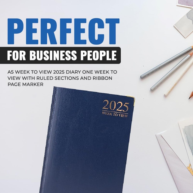 - A5 Week To View 2025 Diary One week to view with ruled sections and ribbon page marker