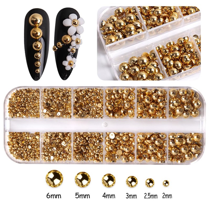 - Nail Pearls - Every Box of Flat back Pearls Come With 6 Sizes: 2mm, 2.5mm, 3mm 4mm, 5mm, 6mm. Multi color nail pearls are commonly used colors that are very suitable for nail art design.