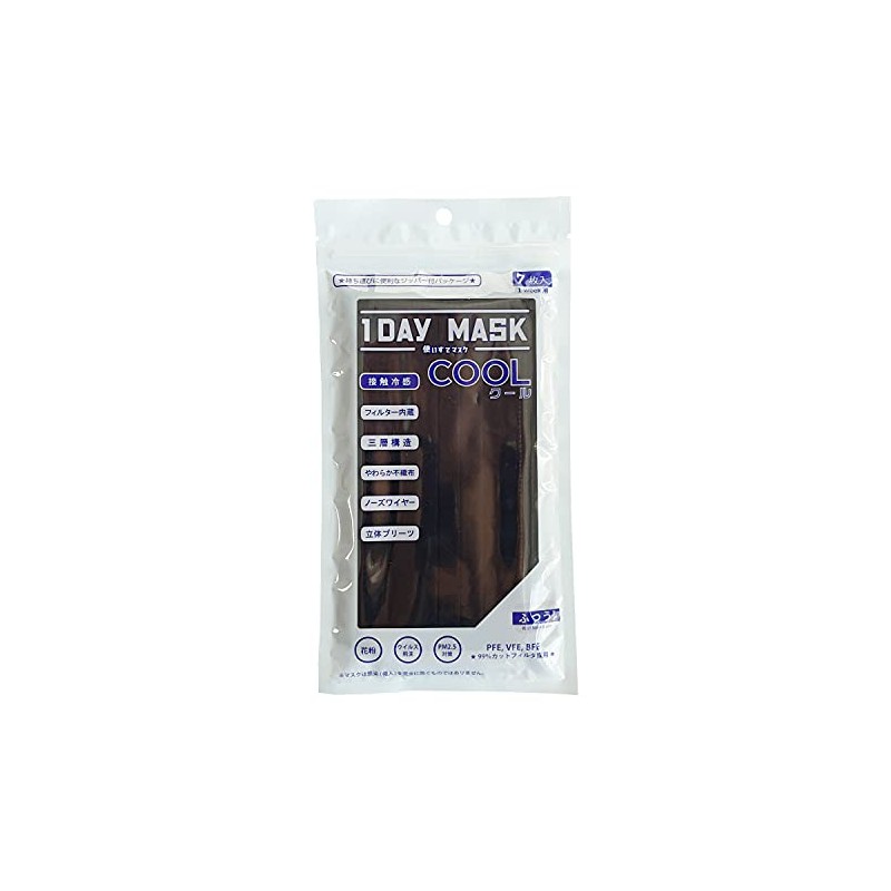 1DAY MASK COOL Regular Size, Black, 7 Pieces, Set of 2 Bags, Cool Feeling Non-Woven Mask, Pattern Mask