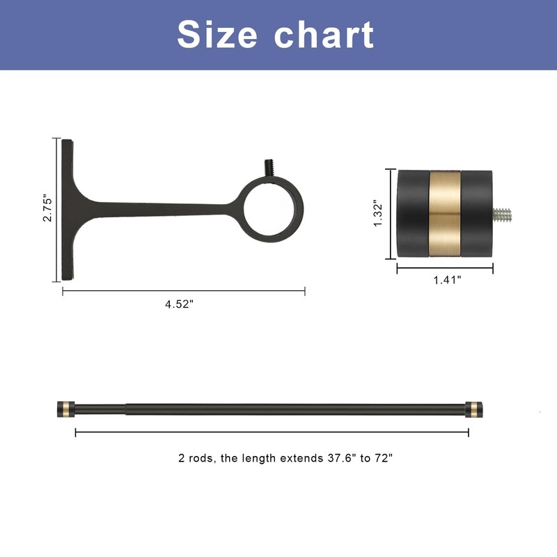- 【Telescoping Structure】The telescoping structure drapery rods are easy to assemble comparing to the splicing structure rods. 36-72” size comes with 2 rods, 72-144” size rods comes with 3 rods, just put them together and adjust the overlap length to meet your requirements, it saves time.