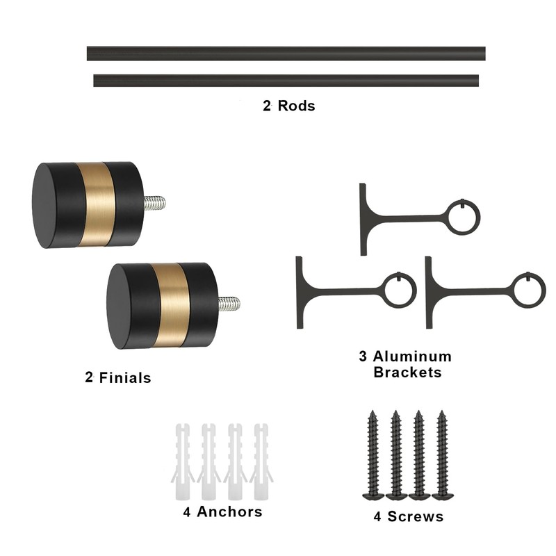 - 【Design Concept】Designing customers’ satisfactory curtain rods are our ultimate goal. Usually, the whole curtain rods are the the same color, this time, we designed curtain rods with the finials which has two kinds of color. The middle color of end caps dot the curtain rods, it will be more decorative and attractive when hanging up the curtains.The finials material adopts aluminum alloy, makes the rods modern and simple. They can match with different curtains.