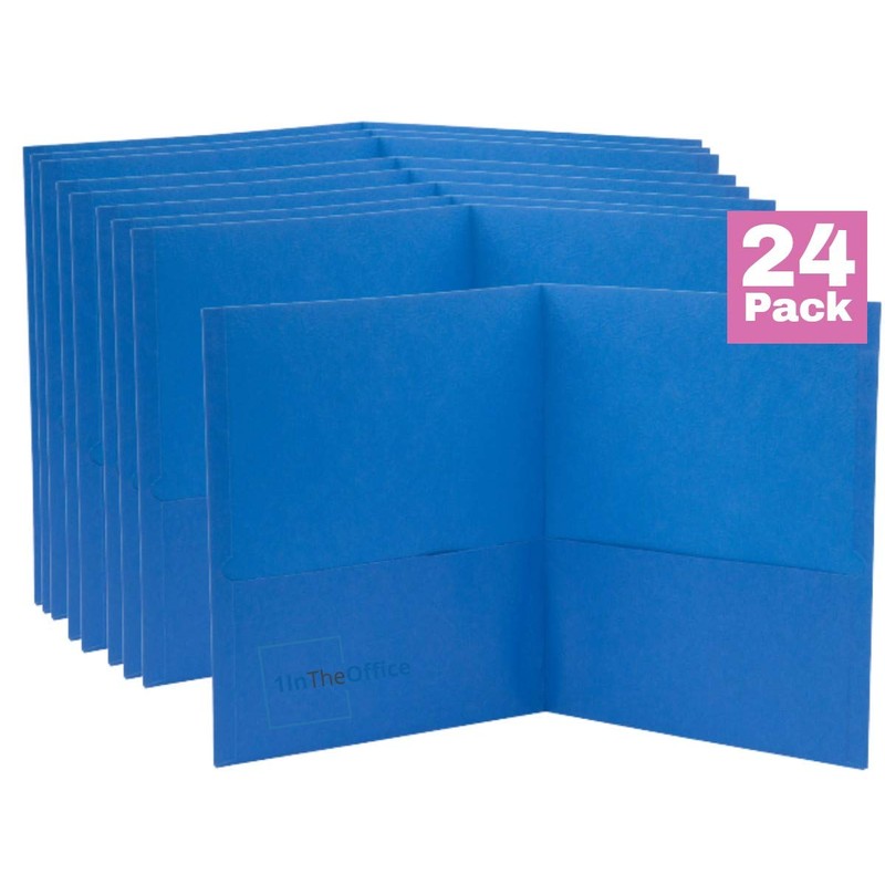 1InTheOffice Blue Folders with Pockets, Letter Size 2-Pocket Embossed Paper P...