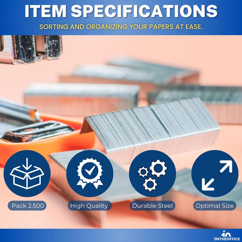 1InTheOffice Grapas estándar, grapas para grapadora, grapas de repuesto, longitud de pierna de 1/4 pulgadas, 25000 grapas/caja