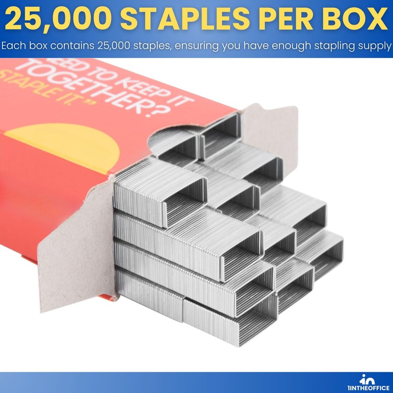 1InTheOffice - Grapas estándar para grapadora, grapas de repuesto, longitud de pierna de 1/4 pulgadas, 25000 grapas/caja