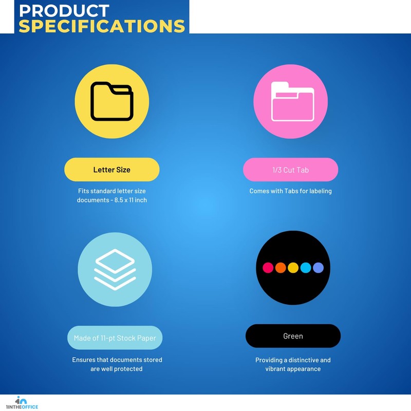 - Green hanging file folders are designed to fit standard letter-size documents, making them perfect for storing and organizing your paperwork.