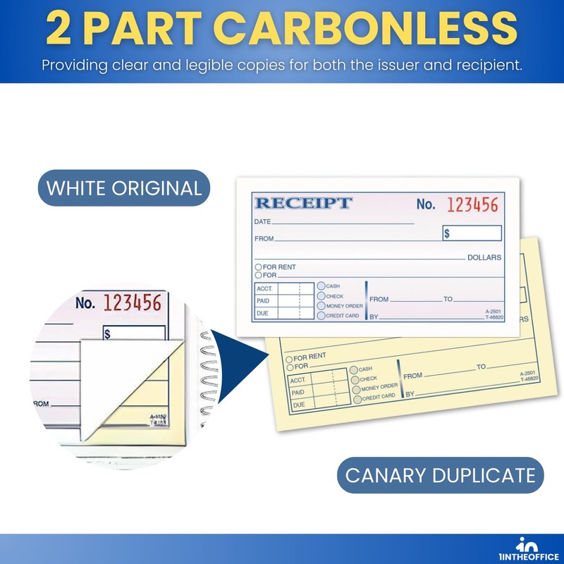 - Receipt books 2 part carbonless designed for convenient use and hassle free just tear of the white part.