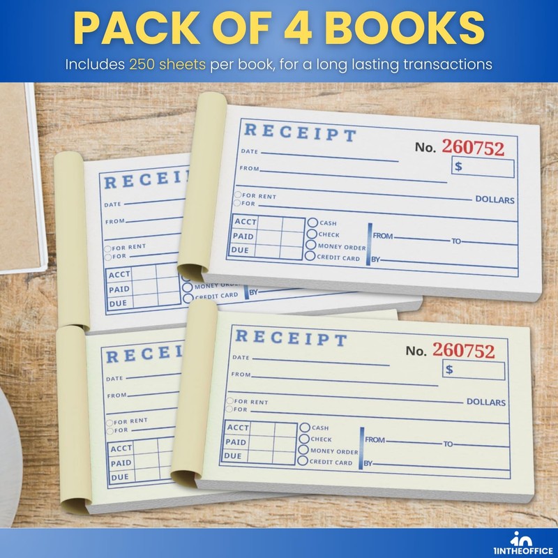 1InTheOffice Money Rent Receipt Book, 2 Part Carbonless, 2.75" x 4.78", 250 Sheets/Book, 4 Pack